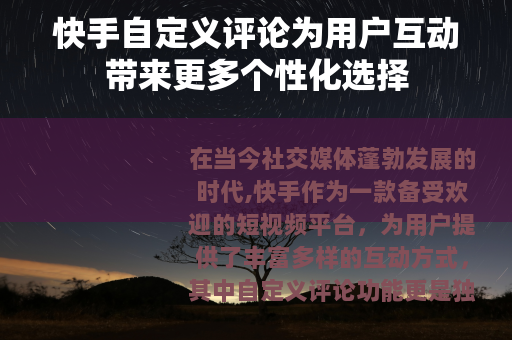 快手自定义评论为用户互动带来更多个性化选择
