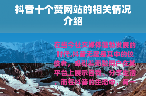 在当今社交媒体蓬勃发展的时代,抖音无疑是其中的佼佼者,吸引着无数用户在其平台上展示自我、分享生活,而在抖音的生态中,有一种现象备受关注,那就是抖音十个赞网站。