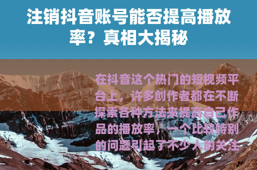 在抖音这个热门的短视频平台上,许多创作者都在不断探索各种方法来提高自己作品的播放率,一个比较特别的问题引起了不少人的关注,那就是注销抖音账号是否会提高播放率呢?