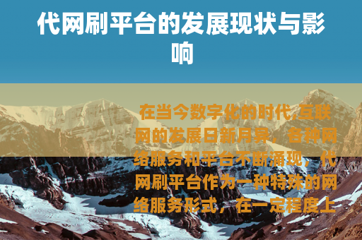 在当今数字化的时代,互联网的发展日新月异,各种网络服务和平台不断涌现,代网刷平台作为一种特殊的网络服务形式,在一定程度上引起了人们的关注。