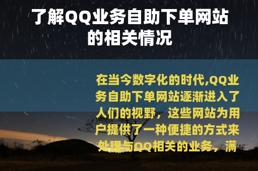 在当今数字化的时代,QQ业务自助下单网站逐渐进入了人们的视野,这些网站为用户提供了一种便捷的方式来处理与QQ相关的业务,满足了不同用户的多样化需求。