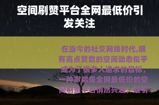 在当今的社交网络时代,拥有高点赞数的空间动态似乎成为了很多人追求的目标,一种声称是全网最低价的空间刷赞平台悄然兴起,吸引了众多用户的目光。