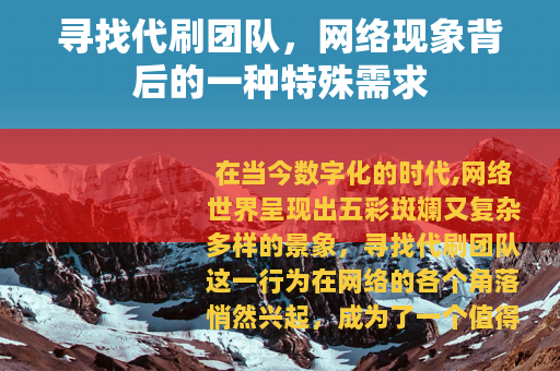 在当今数字化的时代,网络世界呈现出五彩斑斓又复杂多样的景象,寻找代刷团队这一行为在网络的各个角落悄然兴起,成为了一个值得关注的现象。