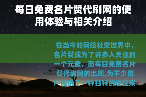 在当今的网络社交世界中,名片赞成为了许多人关注的一个元素,而每日免费名片赞代刷网的出现,为不少用户提供了一种独特的途径来增加自己名片的点赞数量。