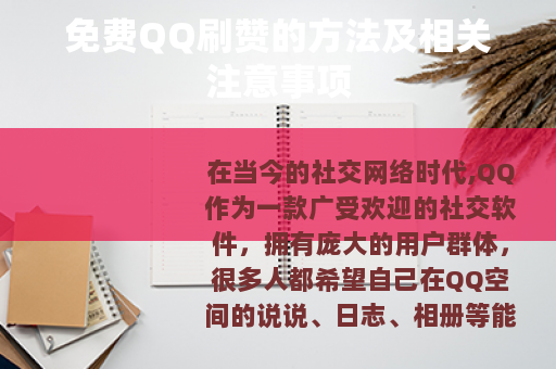 在当今的社交网络时代,QQ作为一款广受欢迎的社交软件,拥有庞大的用户群体,很多人都希望自己在QQ空间的说说、日志、相册等能获得更多的赞,以此来展示自己的人气和魅力,而免费QQ刷赞也成为了一些人关注的话题。