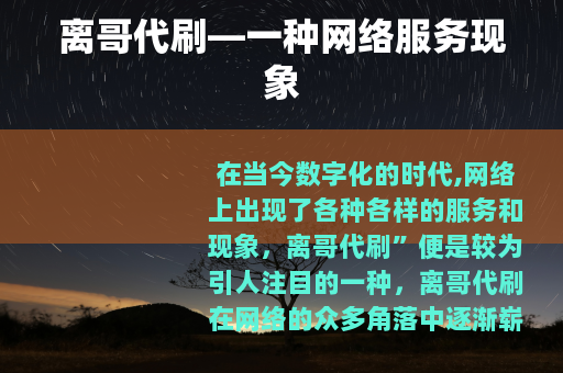 在当今数字化的时代,网络上出现了各种各样的服务和现象,离哥代刷”便是较为引人注目的一种,离哥代刷在网络的众多角落中逐渐崭露头角,吸引了不少人的关注。