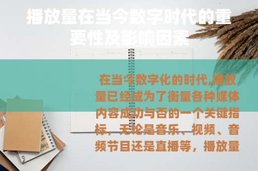 在当今数字化的时代,播放量已经成为了衡量各种媒体内容成功与否的一个关键指标,无论是音乐、视频、音频节目还是直播等,播放量都在很大程度上决定了其影响力和价值。
