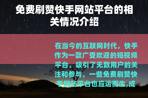 在当今的互联网时代,快手作为一款广受欢迎的短视频平台,吸引了无数用户的关注和参与,一些免费刷赞快手网站平台也应运而生,成为了不少人热议的话题。