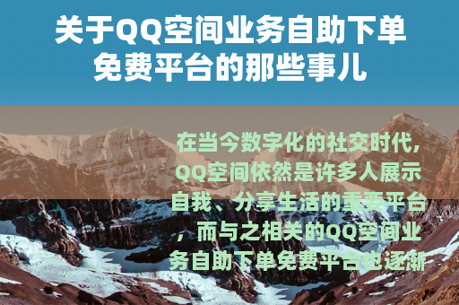 在当今数字化的社交时代,QQ空间依然是许多人展示自我、分享生活的重要平台,而与之相关的QQ空间业务自助下单免费平台也逐渐进入了人们的视野。