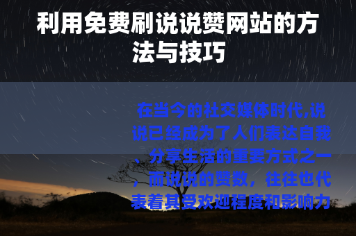 在当今的社交媒体时代,说说已经成为了人们表达自我、分享生活的重要方式之一,而说说的赞数,往往也代表着其受欢迎程度和影响力,很多人都希望自己的说说能获得更多的赞,以展示自己的魅力和个性,幸运的是,现在有一些可以免费刷说说赞的网站,为我们提供了这样的机会。
