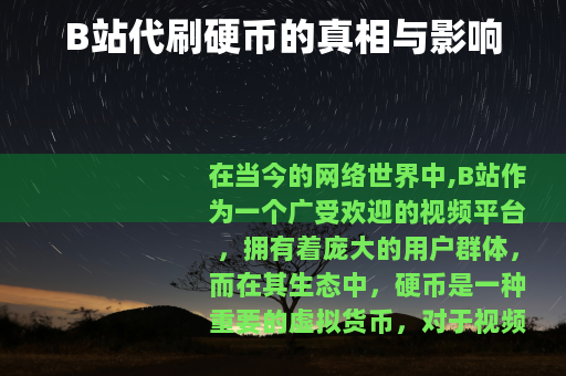 在当今的网络世界中,B站作为一个广受欢迎的视频平台,拥有着庞大的用户群体,而在其生态中,硬币是一种重要的虚拟货币,对于视频创作者来说,硬币的数量在一定程度上代表着作品的受欢迎程度和价值,近年来出现了一种现象,那就是B站代刷硬币服务的兴起。