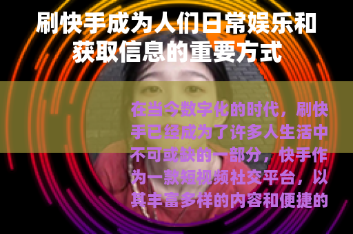 刷快手已经深深地融入了我们的生活,成为了我们生活中不可或缺的一部分,它为我们带来了快乐、知识、友谊和机会,让我们的生活变得更加丰富多彩,让我们继续在快手上探索和发现,享受这个充满魅力的短视频世界带给我们的美好体验。
