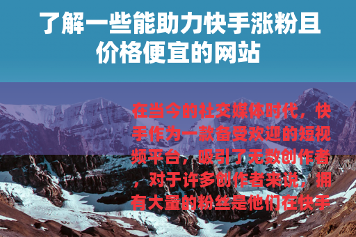 在当今的社交媒体时代,快手作为一款备受欢迎的短视频平台,吸引了无数创作者,对于许多创作者来说,拥有大量的粉丝是他们在快手上取得成功的关键之一,而随着需求的增加,市场上也出现了一些声称可以帮助快手涨粉且价格便宜的网站。