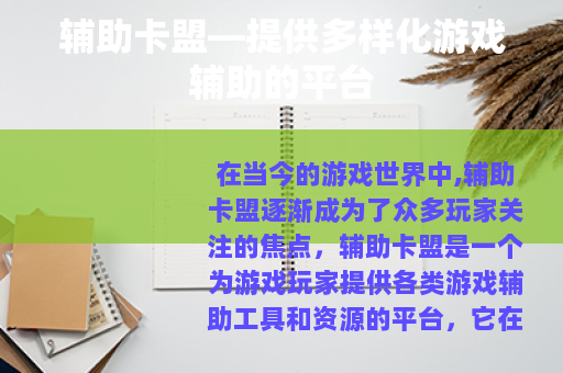 在当今的游戏世界中,辅助卡盟逐渐成为了众多玩家关注的焦点,辅助卡盟是一个为游戏玩家提供各类游戏辅助工具和资源的平台,它在游戏领域中有着独特的地位和作用。