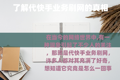 在当今的网络世界中,有一种现象引起了不少人的关注,那就是代快手业务刷网,许多人都对其充满了好奇,想知道它究竟是怎么一回事。