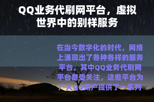 在当今数字化的时代,网络上涌现出了各种各样的服务平台,其中QQ业务代刷网平台备受关注,这些平台为广大QQ用户提供了一系列独特的业务代刷服务,满足了不同用户在虚拟社交领域的多样化需求。