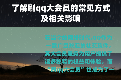 在当今的网络时代,QQ作为一款广受欢迎的社交软件,其大会员服务为用户提供了诸多独特的权益和体验,而“刷qq大会员”也成为了一个在部分用户群体中被讨论的话题。