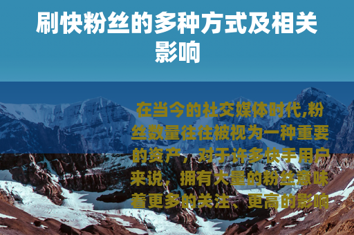 在当今的社交媒体时代,粉丝数量往往被视为一种重要的资产,对于许多快手用户来说,拥有大量的粉丝意味着更多的关注、更高的影响力以及可能带来的各种商业机会,刷快粉丝的现象逐渐兴起。