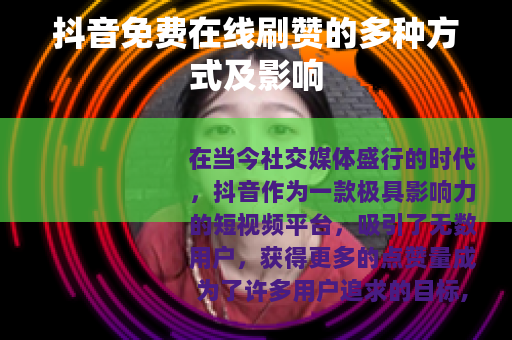 在当今社交媒体盛行的时代,抖音作为一款极具影响力的短视频平台,吸引了无数用户,获得更多的点赞量成为了许多用户追求的目标,而抖音免费在线刷赞也随之成为了一个热门话题。