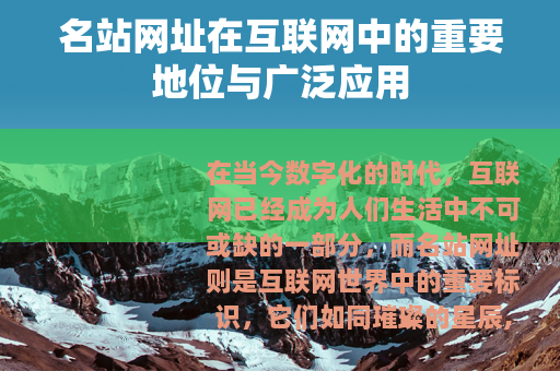 在当今数字化的时代,互联网已经成为人们生活中不可或缺的一部分,而名站网址则是互联网世界中的重要标识,它们如同璀璨的星辰,在浩瀚的网络海洋中指引着人们前行的方向。