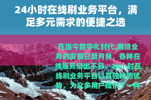 在当今数字化时代,网络业务的发展日新月异,各种在线服务层出不穷,24小时在线刷业务平台以其独特的优势,为众多用户提供了一种全新的体验和解决方案。