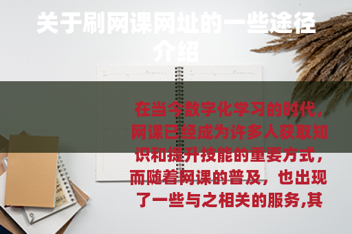 在当今数字化学习的时代,网课已经成为许多人获取知识和提升技能的重要方式,而随着网课的普及,也出现了一些与之相关的服务,其中刷网课的网址就是一种比较受关注的话题。
