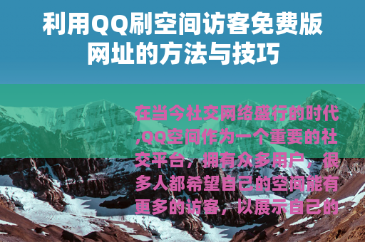 在当今社交网络盛行的时代,QQ空间作为一个重要的社交平台,拥有众多用户,很多人都希望自己的空间能有更多的访客,以展示自己的生活点滴和个性风采,而QQ刷空间访客免费版网址便应运而生,为用户提供了一种增加访客量的途径。