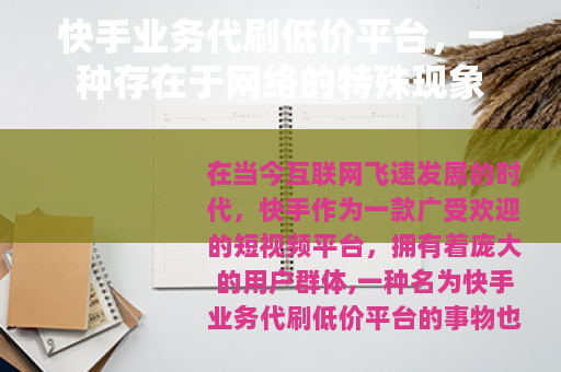 在当今互联网飞速发展的时代,快手作为一款广受欢迎的短视频平台,拥有着庞大的用户群体,一种名为快手业务代刷低价平台的事物也悄然出现在网络的角落。