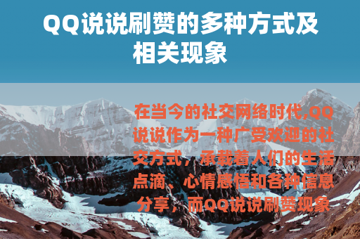 在当今的社交网络时代,QQ说说作为一种广受欢迎的社交方式,承载着人们的生活点滴、心情感悟和各种信息分享,而QQ说说刷赞现象也随之兴起,成为了一个值得关注的话题。