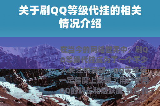 在当今的网络世界中,刷QQ等级代挂成为了一个不少人关注的话题,QQ等级在一定程度上反映了用户使用QQ的时长和活跃度,较高的等级往往能让用户在虚拟社交空间中获得一种别样的成就感。