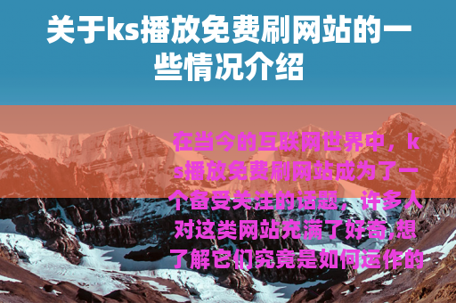 在当今的互联网世界中,ks播放免费刷网站成为了一个备受关注的话题,许多人对这类网站充满了好奇,想了解它们究竟是如何运作的以及能带来哪些体验。