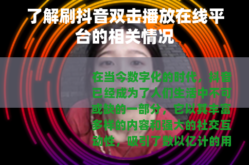 刷抖音双击播放在线平台,是一种通过特定技术手段,为抖音视频增加双击点赞数和播放量的服务平台,这些平台通常宣称能够帮助用户快速提升视频的热度,让更多的人看到自己的作品,从而在抖音这个竞争激烈的平台上获得更多的关注和机会。