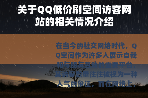 在当今的社交网络时代,QQ空间作为许多人展示自我和与朋友互动的重要平台,其访客数量往往被视为一种人气的象征,而在网络上,出现了一些声称可以提供QQ低价刷空间访客服务的网站,这引起了不少人的关注。
