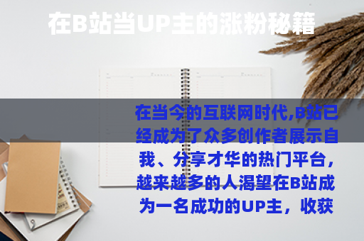在当今的互联网时代,B站已经成为了众多创作者展示自我、分享才华的热门平台,越来越多的人渴望在B站成为一名成功的UP主,收获大量粉丝,实现自己的创作价值,在B站当UP如何涨粉呢?以下是一些实用的方法。 质量是关键,无论在任何平台,优质的内容永远是吸引观众的核心要素,在B站,你需要创作出有深度、有趣味、有特色的视频内容,这意味着你要找到自己擅长且感兴趣的领域,比如游戏、美食、科技、生活记录等等,然后在这个领域持续深耕,提供有价值的信息和独特的观点,如果你是一个游戏UP主,不仅要展示高超的游戏技巧,还可以分享游戏背后的故事、攻略心得以及自己对游戏行业的见解,这样才能让观众觉得你的视频有看头,从而愿意关注你,成为你的粉丝。