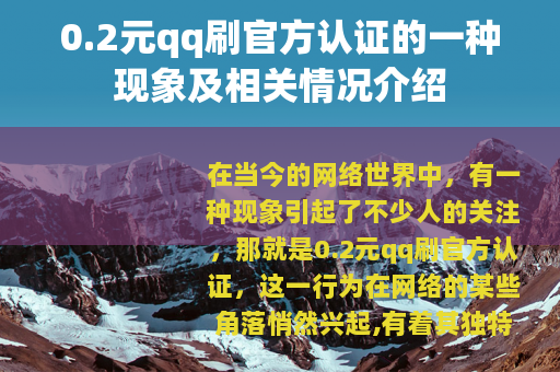 在当今的网络世界中,有一种现象引起了不少人的关注,那就是0.2元qq刷官方认证,这一行为在网络的某些角落悄然兴起,有着其独特的发展轨迹和特点。