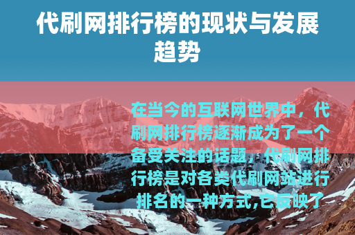 在当今的互联网世界中,代刷网排行榜逐渐成为了一个备受关注的话题,代刷网排行榜是对各类代刷网站进行排名的一种方式,它反映了不同代刷网在市场中的地位和影响力。