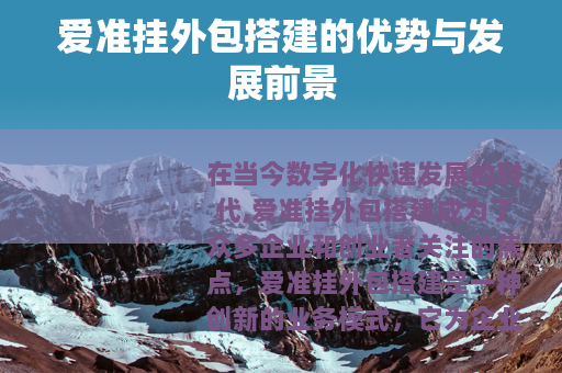 爱准挂外包搭建为企业提供了一种具有诸多优势的发展途径,它以其专业性、成本效益、灵活性等特点,成为了企业在数字化时代实现爱准挂建设的理想选择,随着市场的不断发展和技术的持续创新,爱准挂外包搭建必将在企业的发展中发挥越来越重要的作用,助力企业开创更加美好的未来。 对您有所帮助,您可以根据实际需求对文章进行调整和修改,如果您还有其他问题,欢迎继续向我提问。