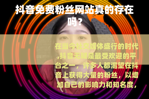 一些人声称存在抖音免费粉丝网站,这些网站号称可以帮助用户轻松获取大量免费的抖音粉丝,我们需要理性看待这些所谓的免费粉丝网站。