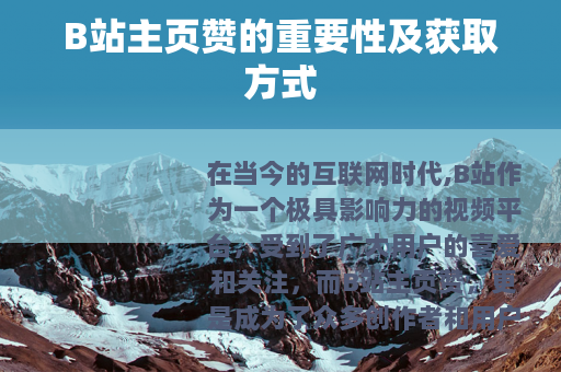 在当今的互联网时代,B站作为一个极具影响力的视频平台,受到了广大用户的喜爱和关注,而B站主页赞,更是成为了众多创作者和用户都非常看重的一个元素,它不仅仅是一个简单的点赞图标,背后还蕴含着诸多的意义和价值。