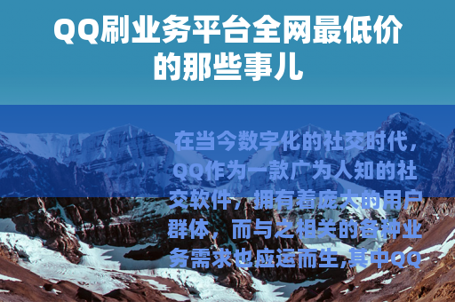 在当今数字化的社交时代,QQ作为一款广为人知的社交软件,拥有着庞大的用户群体,而与之相关的各种业务需求也应运而生,其中QQ刷业务平台全网最低价的现象引起了不少人的关注。