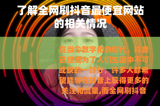 在当今数字化的时代,抖音已经成为了人们生活中不可或缺的一部分,许多人都希望能够在抖音上获得更多的关注和流量,而全网刷抖音最便宜网站也因此应运而生。