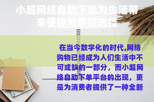 在当今数字化的时代,网络购物已经成为人们生活中不可或缺的一部分,而小超网络自助下单平台的出现,更是为消费者提供了一种全新的购物体验,带来了诸多的便利和优势。