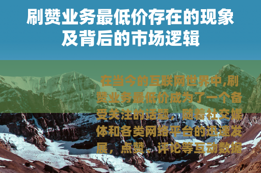 在当今的互联网世界中,刷赞业务最低价成为了一个备受关注的话题,随着社交媒体和各类网络平台的迅速发展,点赞、评论等互动数据在一定程度上成为了衡量一个账号或内容受欢迎程度的重要指标,而刷赞业务的出现,正是为了满足一些用户对于快速提升这些数据的需求。