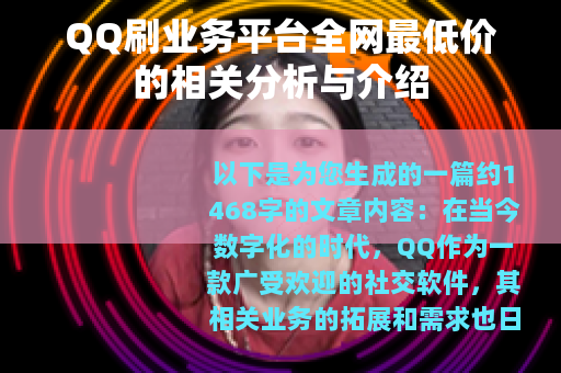在当今数字化的时代,QQ作为一款广受欢迎的社交软件,其相关业务的拓展和需求也日益多样化,QQ刷业务平台全网最低价的现象引起了不少人的关注。