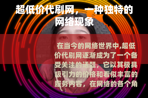 在当今的网络世界中,超低价代刷网逐渐成为了一个备受关注的话题,它以其极具吸引力的价格和看似丰富的服务内容,在网络的各个角落悄然兴起。