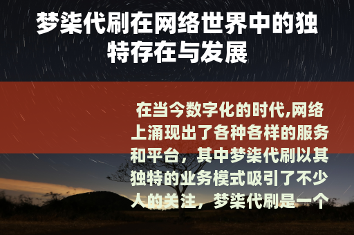 在当今数字化的时代,网络上涌现出了各种各样的服务和平台,其中梦柒代刷以其独特的业务模式吸引了不少人的关注。