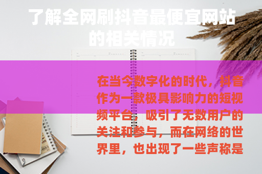 在当今数字化的时代,抖音作为一款极具影响力的短视频平台,吸引了无数用户的关注和参与,而在网络的世界里,也出现了一些声称是全网刷抖音最便宜的网站,这些网站的出现,引发了不少人的兴趣和讨论。