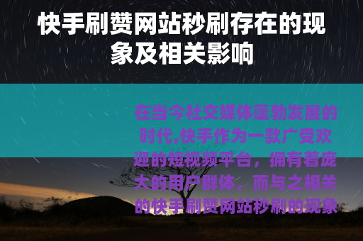 在当今社交媒体蓬勃发展的时代,快手作为一款广受欢迎的短视频平台,拥有着庞大的用户群体,而与之相关的快手刷赞网站秒刷的现象也逐渐引起了人们的关注。