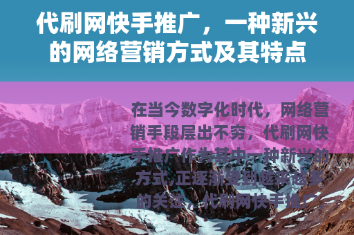 在当今数字化时代,网络营销手段层出不穷,代刷网快手推广作为其中一种新兴的方式,正逐渐受到越来越多的关注。