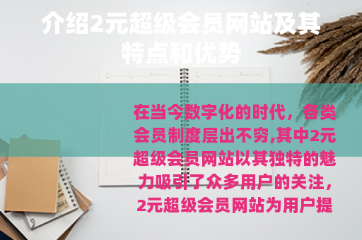在当今数字化的时代,各类会员制度层出不穷,其中2元超级会员网站以其独特的魅力吸引了众多用户的关注。